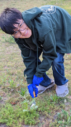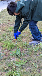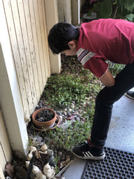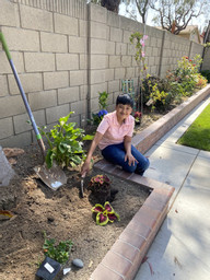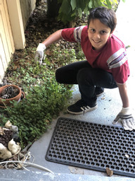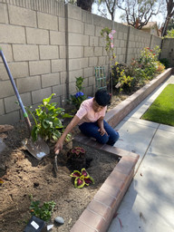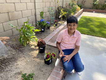 Vedant working in the garden planting a variety of plants.