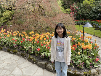 Sabria at the Tulip Festival at Roozengaarde in Skagit County, WA, and The Sunken Garden – Butchart Garden – Victoria, Canada.